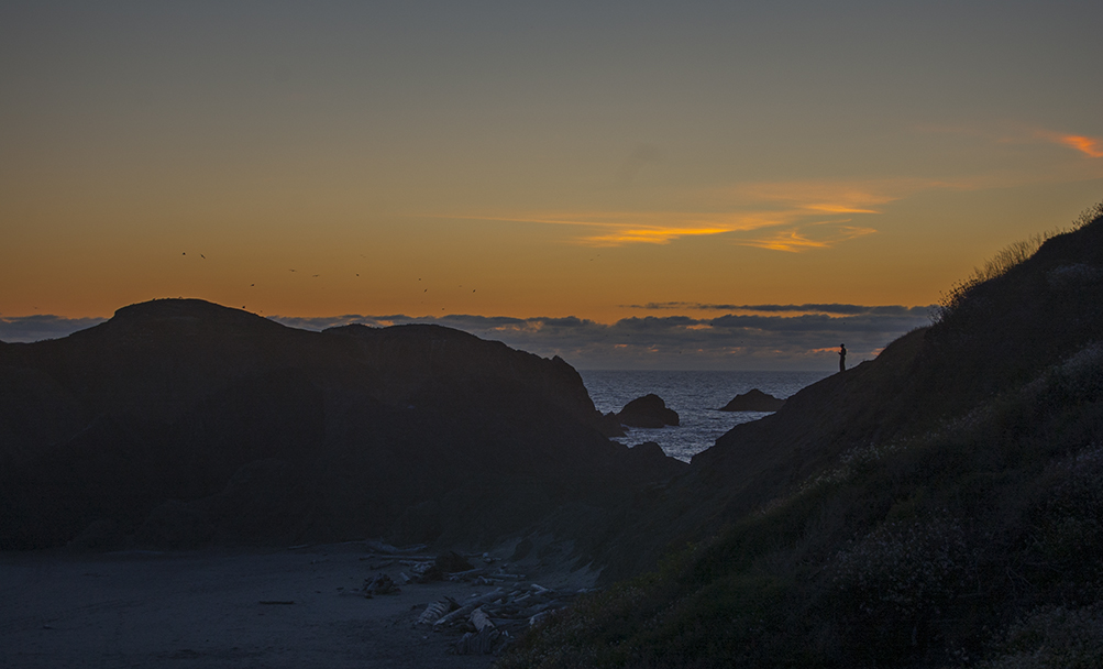 Solitary Figure at Sunset, Bandon (?), Oregon.